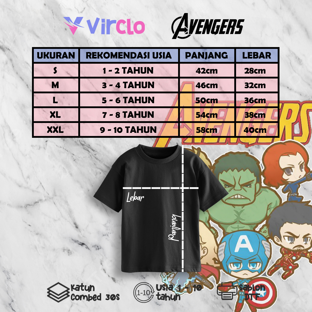 – Material: Soft Cotton Combed 30s (Nyaman banget buat si Jagoan)